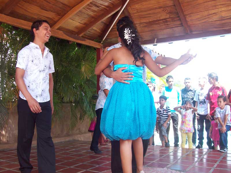 Finalmente, Yenifer apareció, espléndida en su traje azul y maquillada, según los comentarios que pude escuchar de muchos de los presentes, a la perfección. Inmediatamente, se dio inicio al tradicional vals con el que se presentó a la sociedad marabina (y al sol que no dejó de estar nunca presente) a esta niña que creció sin que muchos nos diéramos cuenta.