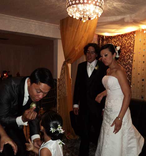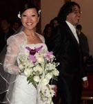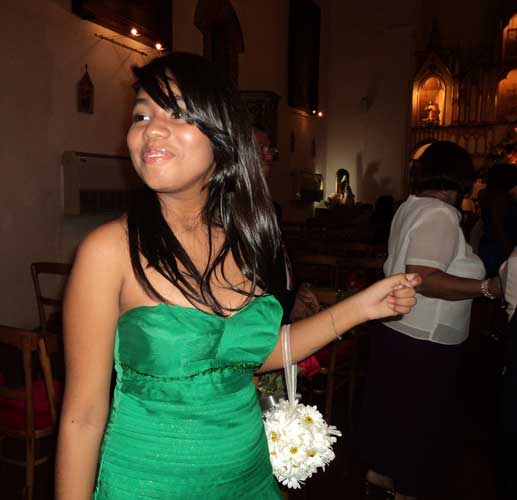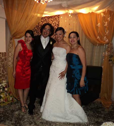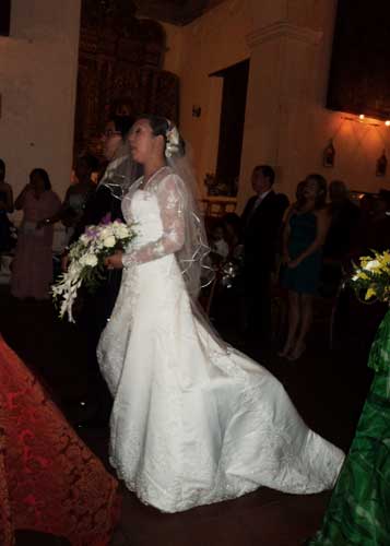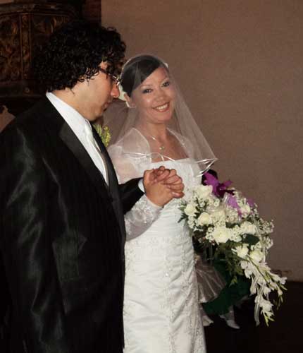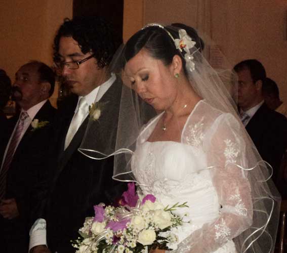 Efraín me dijo que cuando vio entrar a Heidy no podía aguantar las lágrimas. Estoy seguro que la iglesia tuvo que ver mucho con esas ganas de llorar. Aunque debo reconocer que Heidy estaba espectacular: El traje de novia blanco, impóluto y las orquídeas en el tocado y en el ramo la hacían lucir radiante y realizada. La única pincelada de color que siempre imaginó en su ajuar era el violáceo contraste de orquídeas esparcidas en una inmensidad blanca de flores y organza. El cortejo con su impronta verde y el emparejamiento de caraqueños con maracuchas le dio al espectáculo religioso esa connotación de inolvidable.