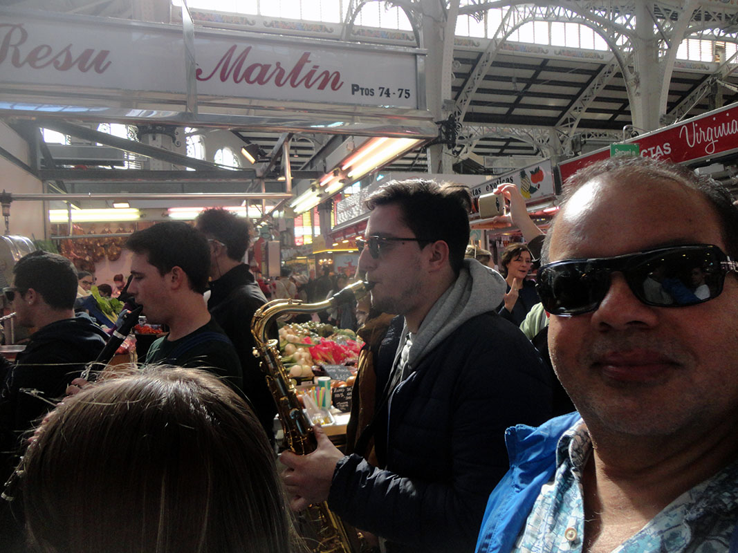 El Mercado Central explota de alegría cuando la música que traen los jóvenes, hace que los visitantes, clientes y marchantes se dejen llevar, cual si estuvieran siguiendo al extraño flautista de aquel pueblo que llaman Hamelín"