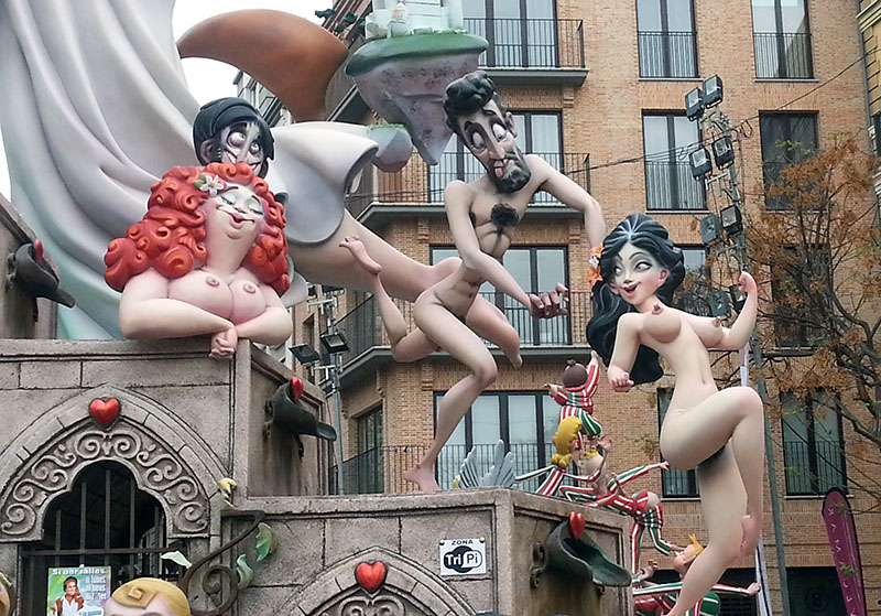 Las Fallas se plantan, generalemente, en plazas ubicadas en intersecciones y de allí que cada una de estas aparatosas esculturas sean denominadas con el nombre de las calles que confluyen en esas esquinas. Plantan fallas para regalar. Recuerdo haber leído que este año fueron más de 600 y todas ellas estaban debidamente clasificadas: por zona, por categoría e incluso por tamaño.